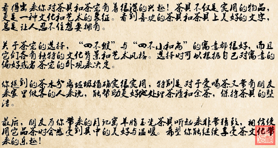 5. **紫砂茶寵“四不猴”與小和尚**:展示了可能購買的茶寵選擇,都是具有傳統文化寓意的擺件。