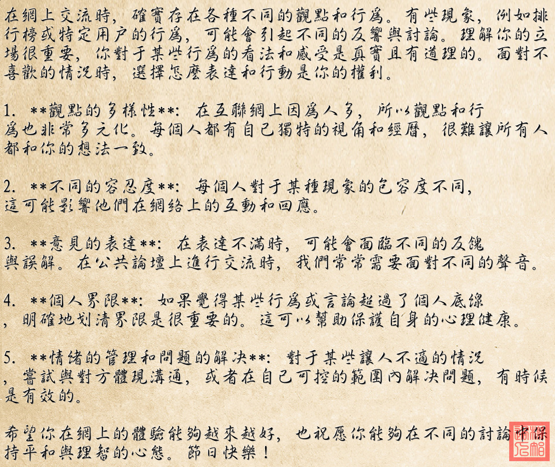3. 提到自己能容忍不同的網絡文化,但對一些行為感到不適。