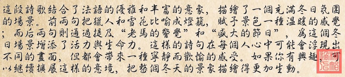 唱了一句半,確實是法語,是我寫的原文。你能不能讓它自己根據文意畫畫?