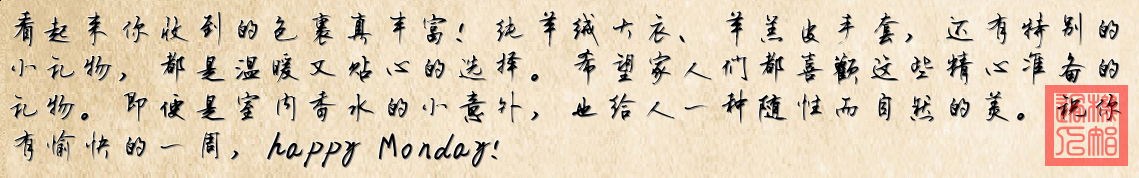 這些物品看起來都非常精致,似乎是為家人和自己準備的禮物。希望這些分享能給你帶來喜悅,祝你周一愉快!