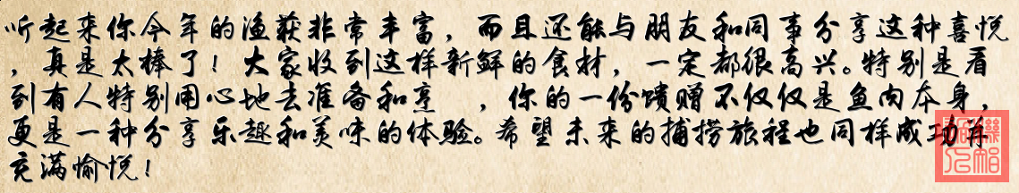 《分享的暖》 海風還帶著鹹味 船艙裝滿銀色的光輝 今年豐收的喜悅 在冰櫃裏靜靜沉睡 清晨提著藍色塑料袋 辦公室飄著海的氣息 每份禮物都藏著故事 在尋常日子泛起漣漪 深夜收到他的消息 照片裏鍋灶正冒著熱氣 為愛人跑遍超市貨架 照著菜譜小心翼翼 原來最簡單的快樂 是看笑容在別人臉上綻放 當分享成為溫暖的橋梁 每條魚都遊進了心房 這份喜悅不需要珍藏 在平凡生活裏閃閃發亮 就像潮水湧向沙灘 把收獲的幸福與人同享