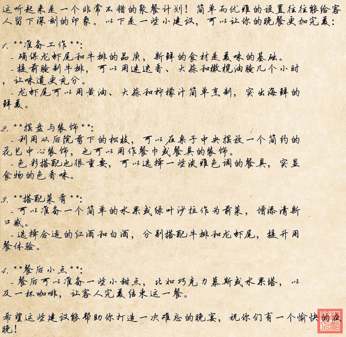 《鬆枝宴》 (前奏漸入,吉他輕撥) 白瓷盤盛著落日的暖 龍蝦尾蜷成月牙彎 肋眼牛排淌著蜜色的光 烤箱裏海風吻過岩岸 鬆枝在玻璃瓶裏舒展 把山野氣息鋪滿桌沿 蠟燭搖碎滿室星子 蘆筍尖掛著露水未幹 (間奏,刀叉輕碰般的打擊樂) 誰說川味必是紅油滾燙 我偏愛海鹽與迷迭香 Costco的冰鮮藏著遠方 後院鬆果裹著霜 (音樂轉柔和) 辣椒在陶罐靜靜安眠 花椒樹做著舊夢酣然 今夜爐火隻煨溫柔 讓刀叉代替竹筷交談 (尾奏漸弱,似燭光搖曳) 鬆枝慢慢垂首 在牛排紋理裏漫遊 龍蝦殼盛滿月光 照見另一種鄉愁