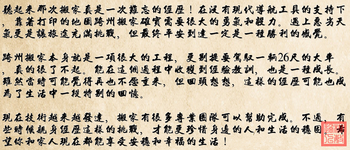 《二十六尺的公路詩》 墨跡暈開的地圖像褪色旗幟 雨刷在擋風玻璃上畫著省略號 我們吞下沿途褪色的廣告牌 把年輕抵押給三天的國道 濃霧忽然漫過科羅拉多原野 方向盤握住二十六個晃動的春天 後視鏡裏故鄉縮成句點 而遠方還在油表盡頭盤旋 你說這是最後一次了 像說起某個戰場的編號 後座堆滿未拆封的夢想 在每一個服務區輕輕搖晃 當月亮爬上貨箱變成郵戳 我們終於學會對道路說謊 說暴雨隻是年輕的韻腳 說二十六尺剛好丈量半生跌宕 多年後孩子指著地圖問起 你隻是擦亮窗上的霧氣 把那些險峻的彎道 折成一隻溫順的紙飛機