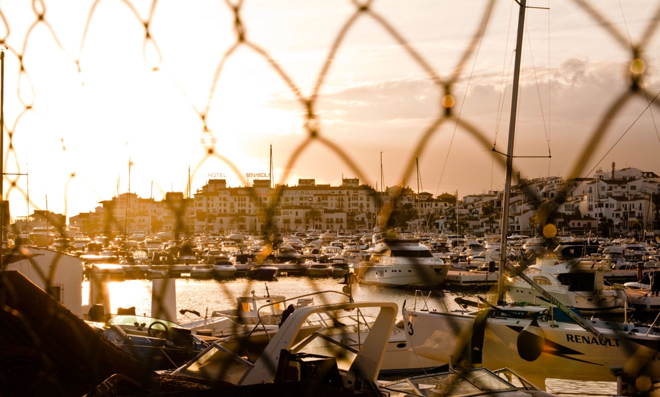 Sunset on Puerto Banús, the wealthest & most extravagant area of Marbella city,