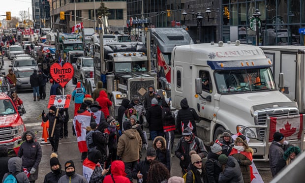 Truckers’ protests over public health restrictions have paralysed Ottawa. Photograph: Alex Kent/Rex/Shutterstock
