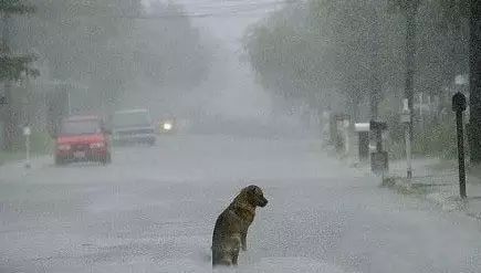 在大雨中等待主人的狗狗.你忍心看可愛的狗狗在大雨中馬路上這樣等你嗎?