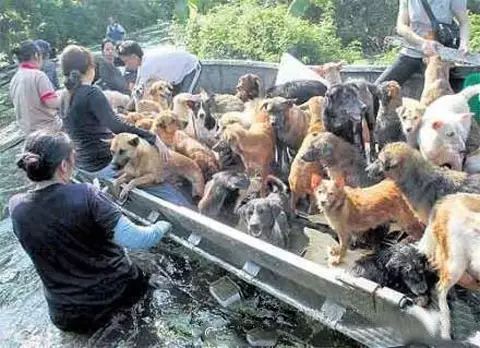 泰國洪災當前,寺廟和動保組織忙得不可開支,圖中僅為一個小鎮就把600多隻流浪狗轉移到高處。
