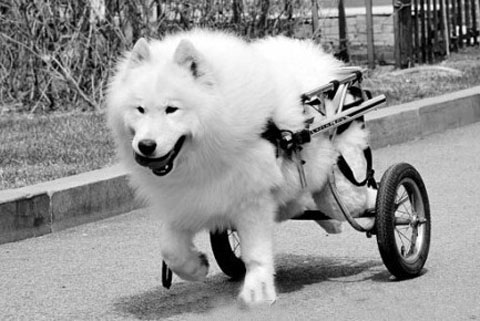 隻要你真心的愛它,你會不在乎他是否乖,是否可愛,是否健全,隻求它能陪在你身邊就可以。沈陽的薩摩耶,1歲時因打疫苗時紮到運動神經,致使盆骨以下全無知覺,2年來,哈利被醫生判了"死刑"。主人沒有放棄它,而是找到省內唯一一個會做寵物輪椅的人,為哈利量身打造了一副輪椅。堅強的哈利感動了網友,而這位心存善念的主人,也讓人們在日漸冷漠的今天感到了無限溫暖——感動。