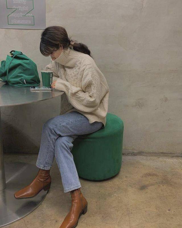 外觀秀氣一點的踝靴,配九分煙管褲最顯瘦,即便是身穿高領大毛衣,也完全沒有臃腫感。