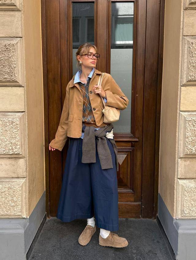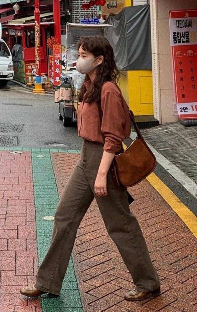 相比起裙子,小棕鞋和褲子更合拍。