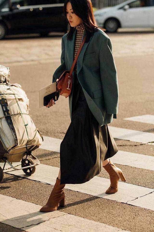 廓形設計的西裝外套,建議可以搭配開叉裙,又美又颯超吸睛,踩雙粗跟踝靴,若隱若現露出腳踝線條,輕鬆拯救好氣質。