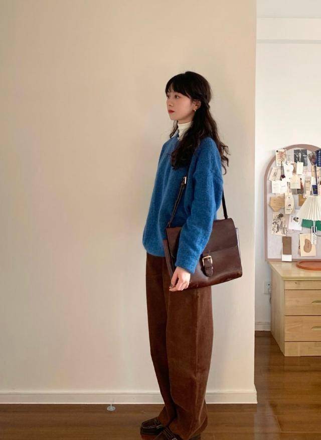 棕色樂福鞋配棕色闊腿褲,利用材質分割,自然不單調。