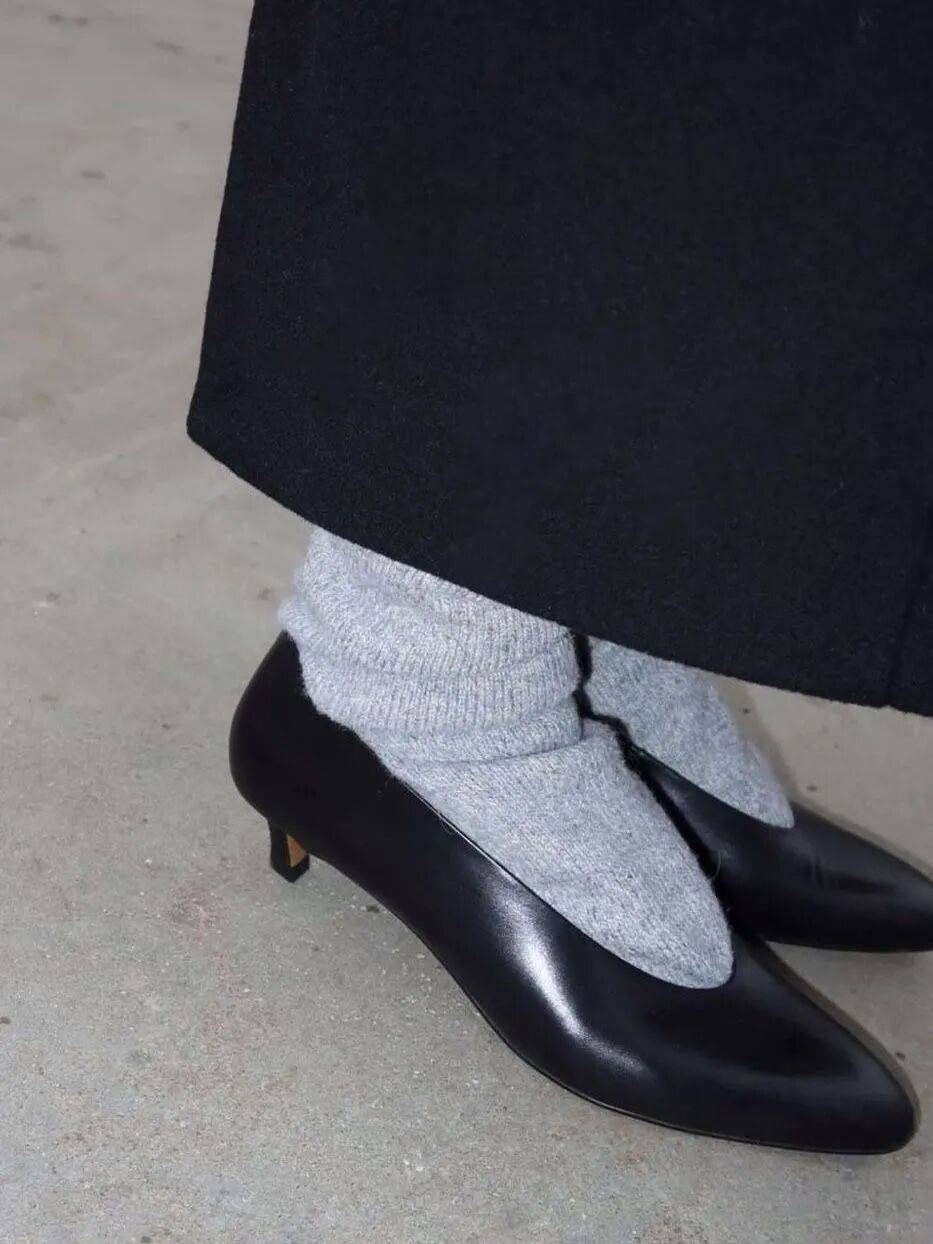 襪子的加入不僅保暖,還為整體造型添了層複古韻味,這種穿法讓人想起小時候,奶奶幫忙穿襪子的溫暖記憶。