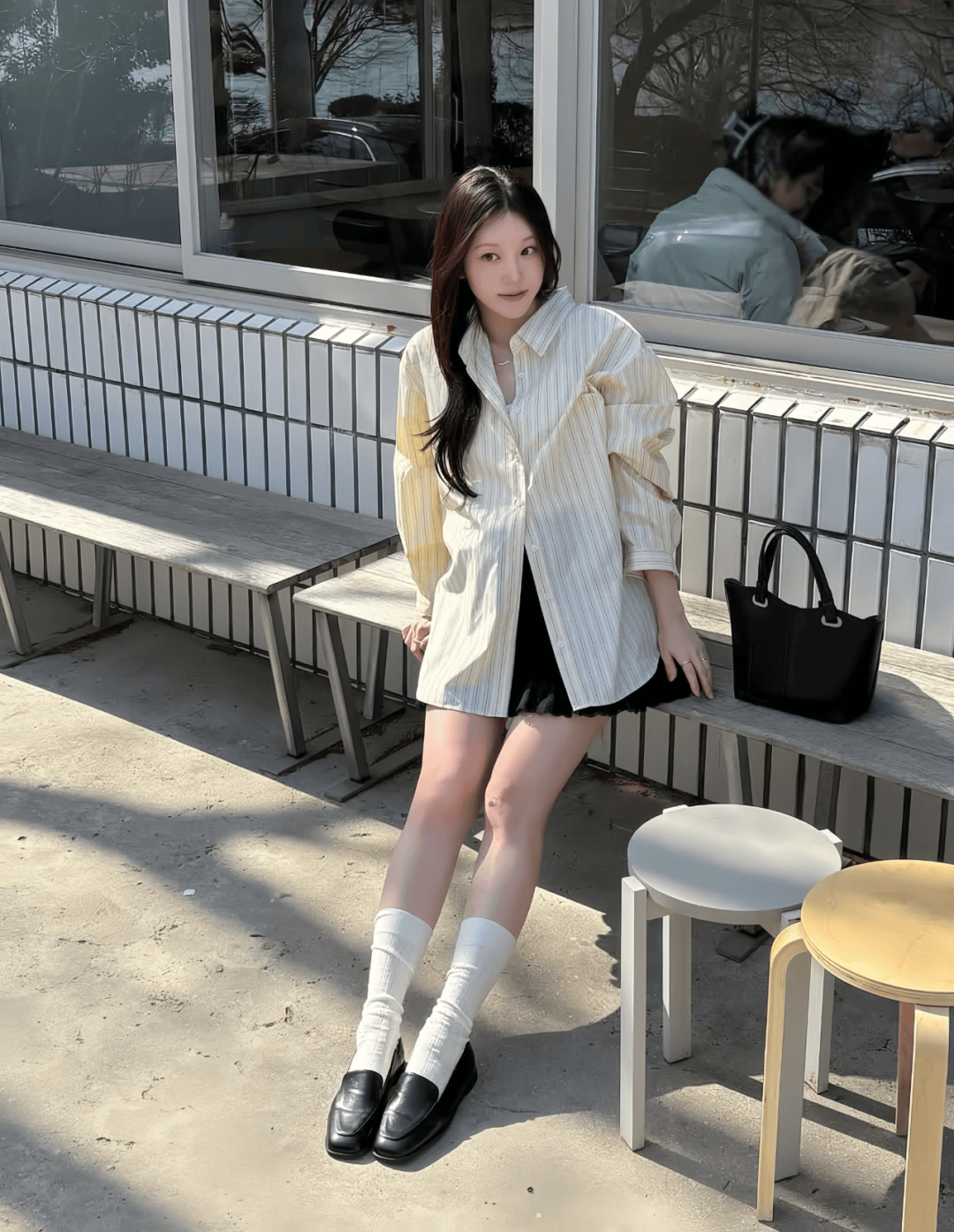這套組合是愛豆們日常最基礎的穿法,也非常適合普通女生照搬。▼