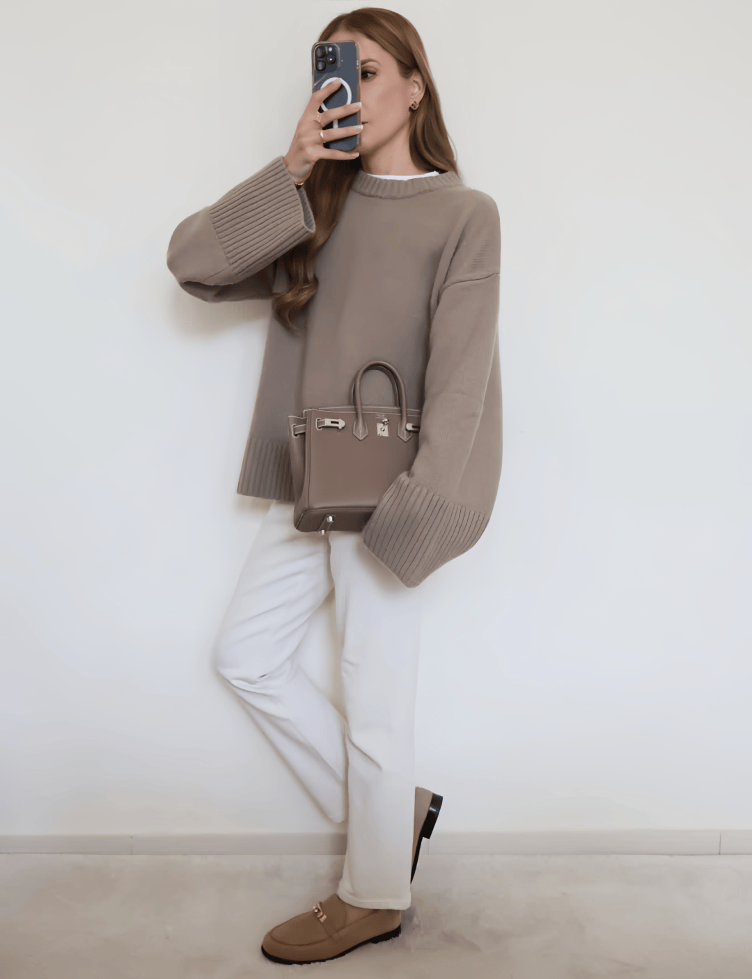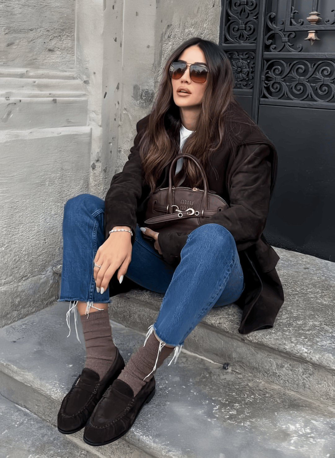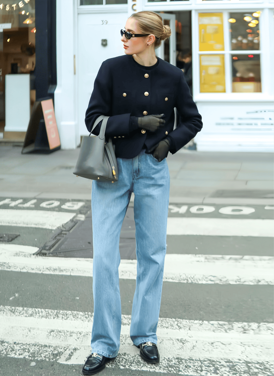 日常最不用動腦子的搭法,就是直接搭配闊腿或者直筒牛仔褲。樂福鞋的正式感能中和牛仔褲的隨性,讓整個 look 看起來更知性。