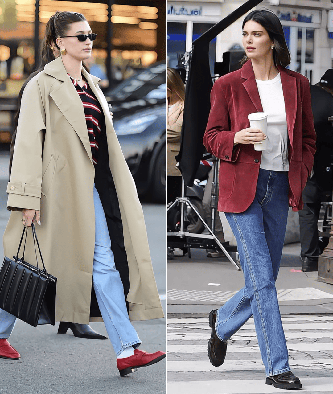 用肯豆的舊圖和新圖對比一下你就能感受到這種差距,前兩年流行的厚底樂福鞋雖然增高效果優秀,但是整體會更為厚重,穿起來偏休閑、街頭感。▼