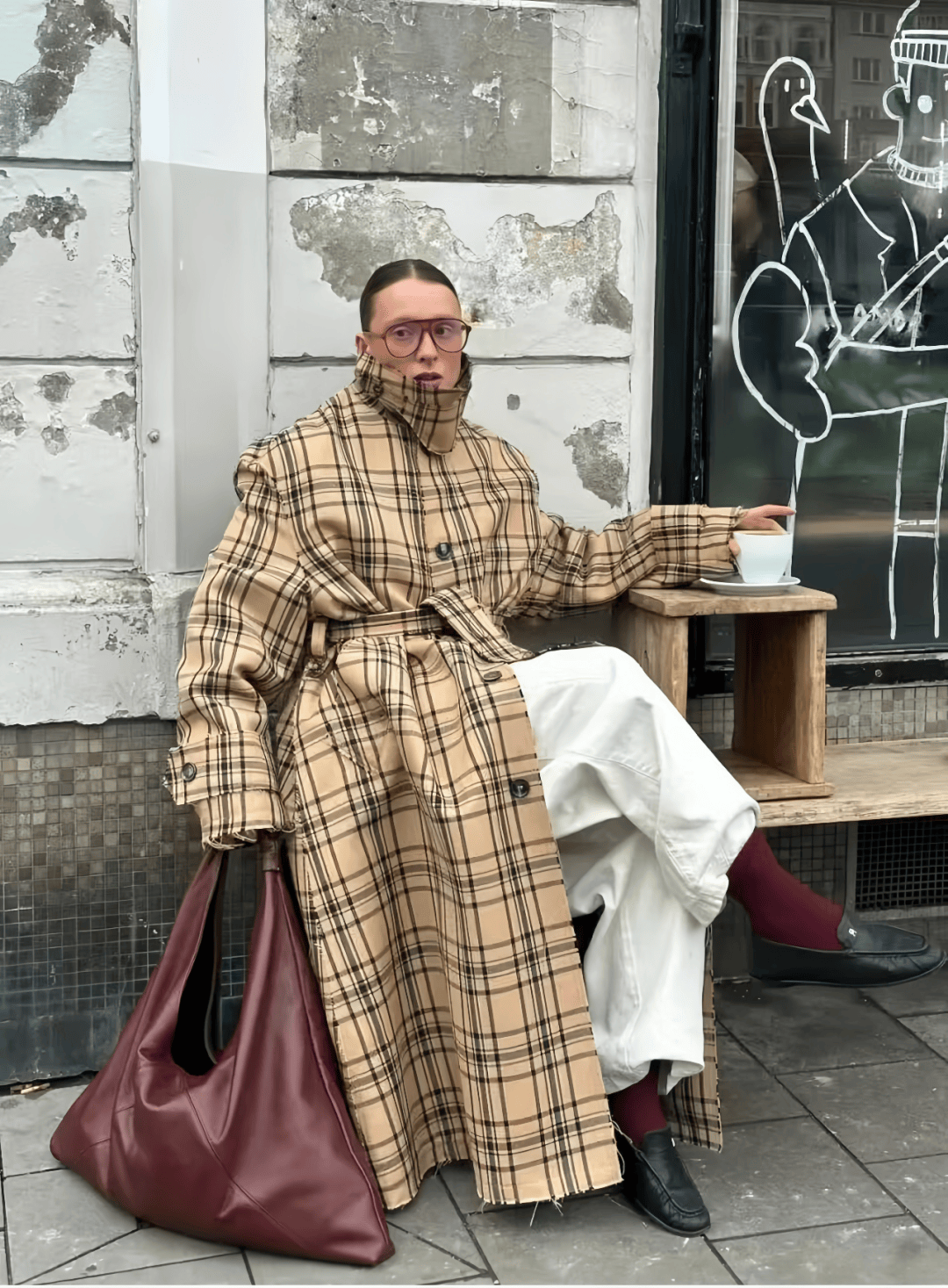 秋天加上一件毛衫、闊腿褲繼續穿,拿捏法式風的慵懶調調。▼