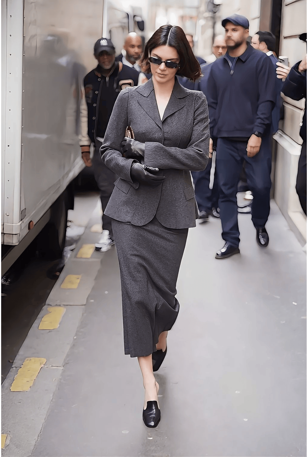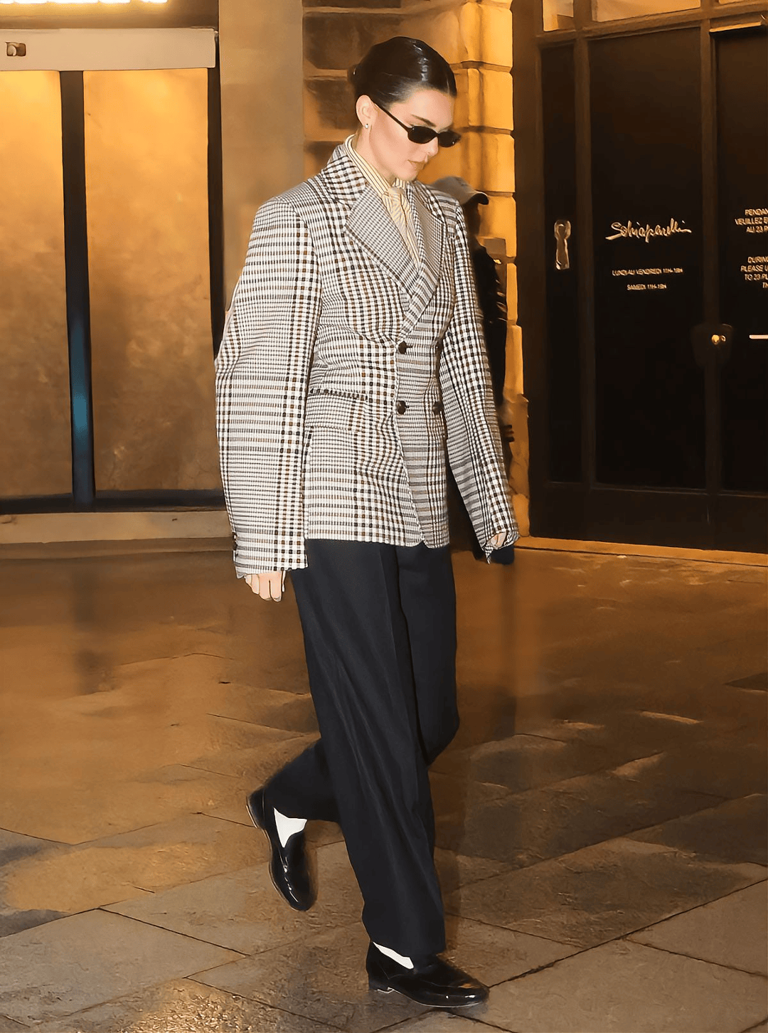 Kendall 近期的神圖之一,就是西裝套裙搭樂福鞋
