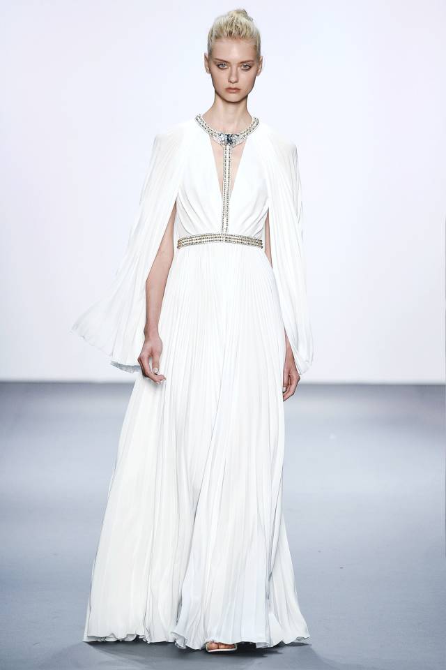 所以Jenny Packham本次設計也有31個look,致敬了設計師眼中不同個性的31位大明星: 比如戴鬥篷的褶皺雪紡裙是Florence Welch(弗洛倫斯·韋爾奇);