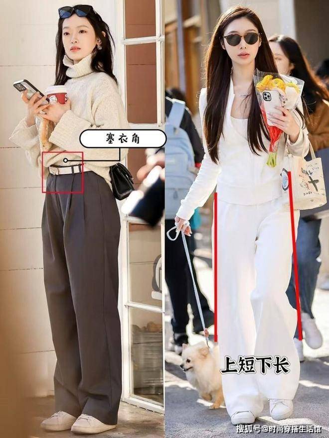 秋天我們不管是選擇什麽樣的服裝,最關鍵的就是要塑造出腰線,尤其是像秋高氣爽的季節,我們選擇的服裝搭配相對厚實,就很容易出現臃腫和顯胖的現象。那麽我們就需要抬高腰線,利用塞衣角,上短下長或者是腰帶,從而讓我們的穿搭更加顯高顯腿長。