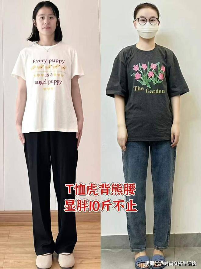 ⑴T恤穿上鬆垮顯無形,毫無氣質
