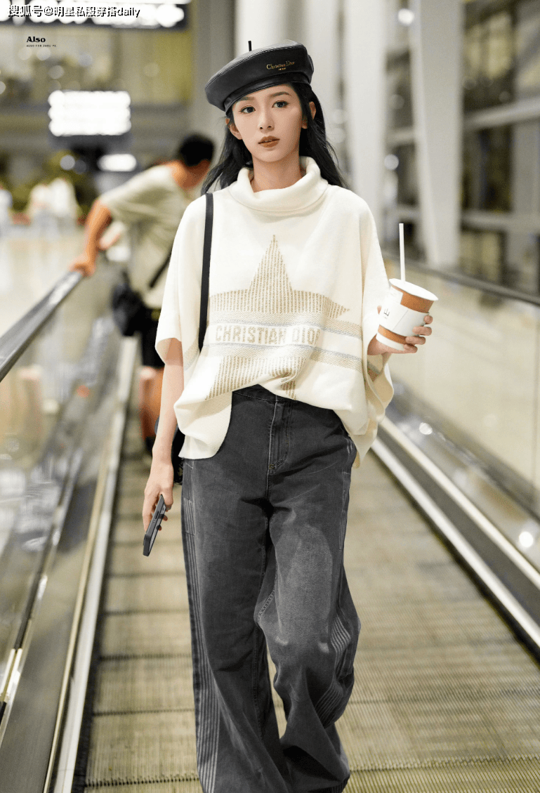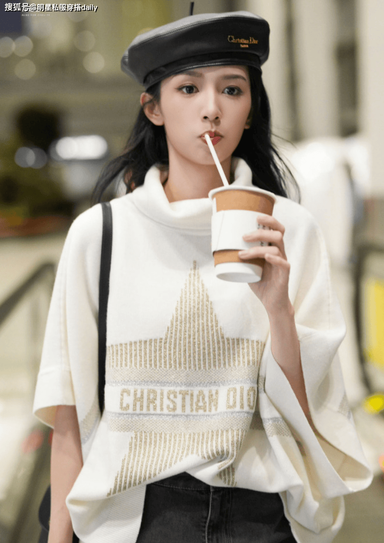 秋冬正是戴貝雷帽的季節,而周也也很喜歡佩戴貝雷帽!在街拍中,她身穿一襲白色高領寬鬆款針織套頭衫,佩戴黑色貝雷帽,打扮休閑時尚!