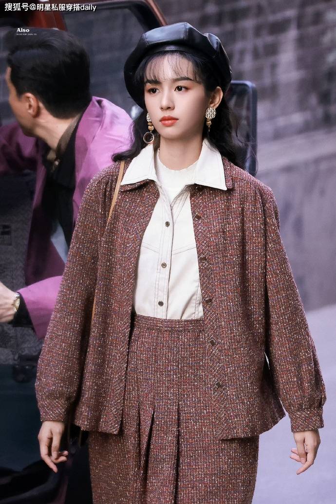 除此之外,在劇中,周也也示範過貝雷帽的搭配!複古感十足!
