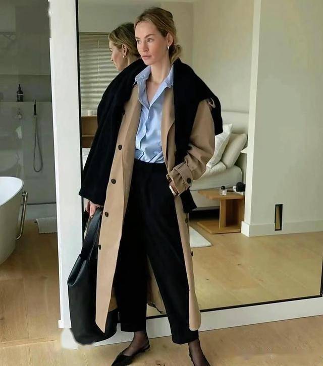 如果你是很大氣率性的女生,建議選擇長款風衣搭配闊腿褲來穿,適合任何的場合,足夠撐起你兩米八的強大氣場,同時又有種慵懶隨性的時尚感,很耐看。