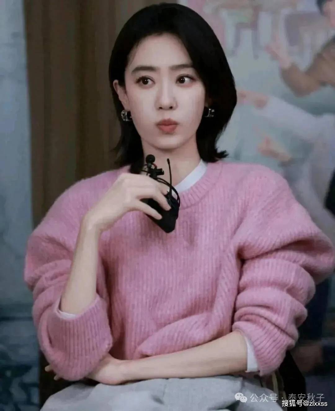 霧粉色圓領羊毛衫內搭一件簡單的白色針織衫,配色清甜溫柔,又帶著浪漫的氛圍,很好看。