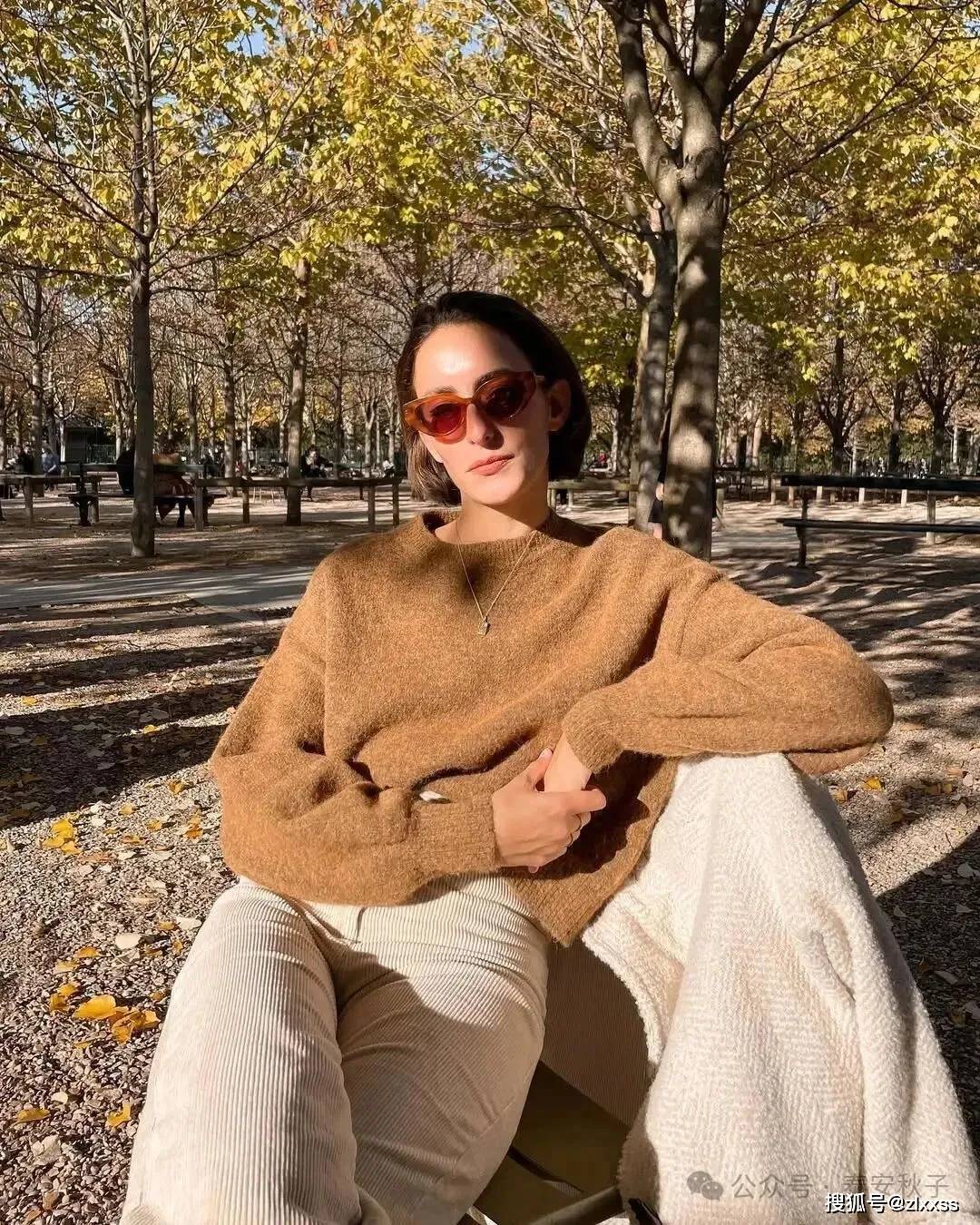 周末去公園散步或是工作閑暇時,選條淺米色的燈芯絨長褲來配,既有一種很複古的味道,又能打造出慵懶隨性的氛圍感,很美。
