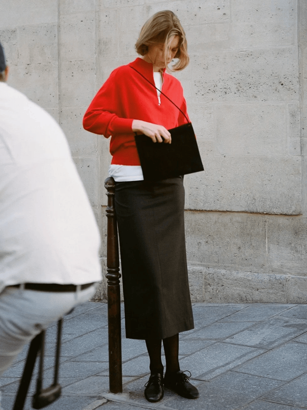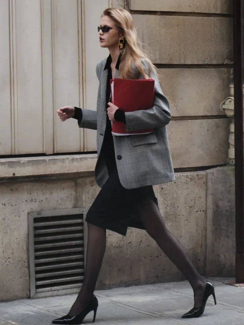 西裝+長裙,最適合秋天通勤LOOK,正式又不失時髦。