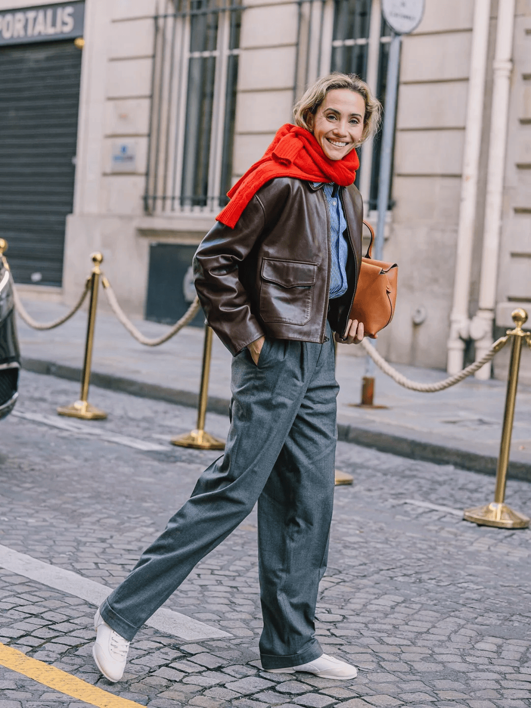 比起全身亮色,小麵積點綴,更能打破沉悶感。
