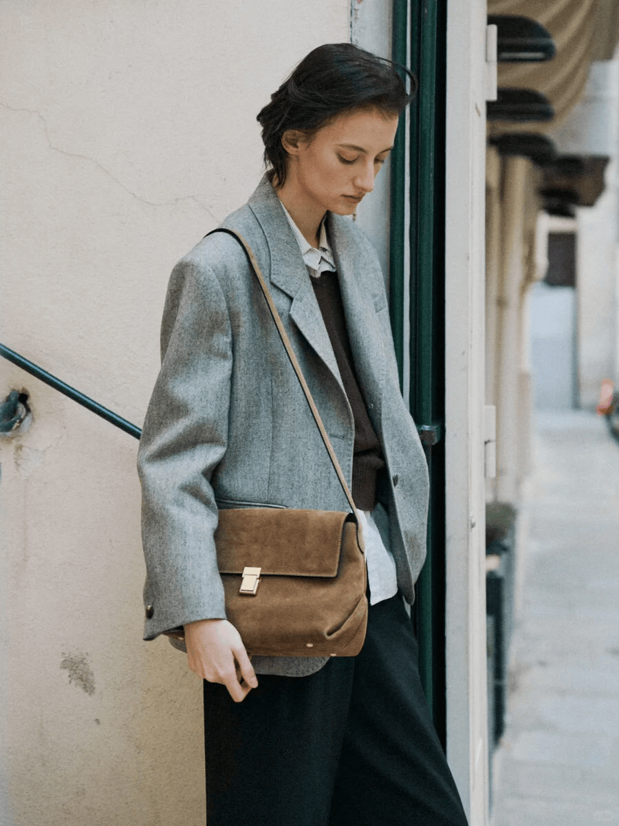 包包也可以作為疊穿一部分,斜跨包也能起到瘦身效果。