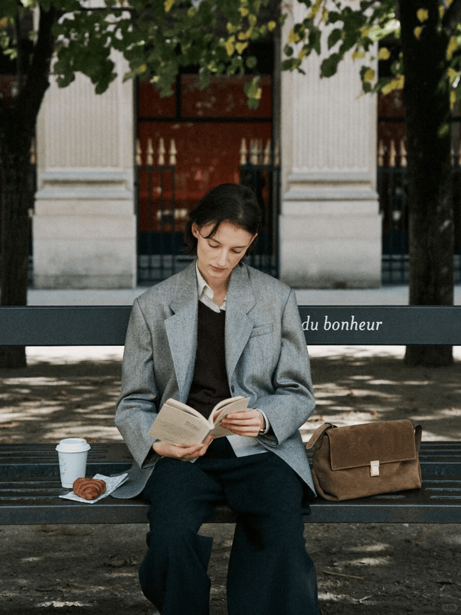 同色係穿搭更耐看,可以通過深淺與材質,增加層次感。