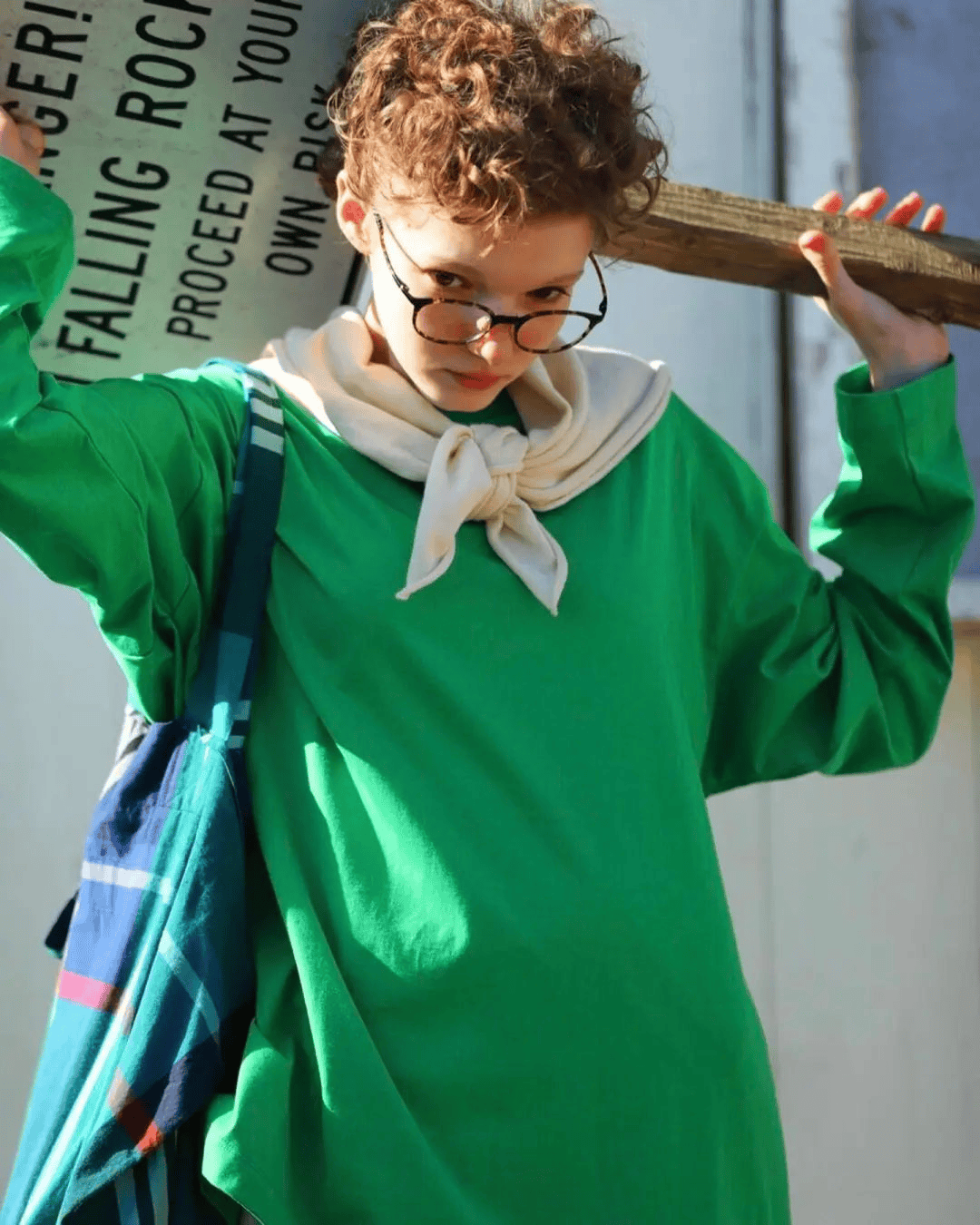 倫敦小眾品牌Studio Nicholson自帶英倫基因,顏色以中性色為主,沒什麽性別感,這條軍綠色三角巾同樣男女都可用,搭綠色、棕色衣服都很好看。官網參考價1283元。▼