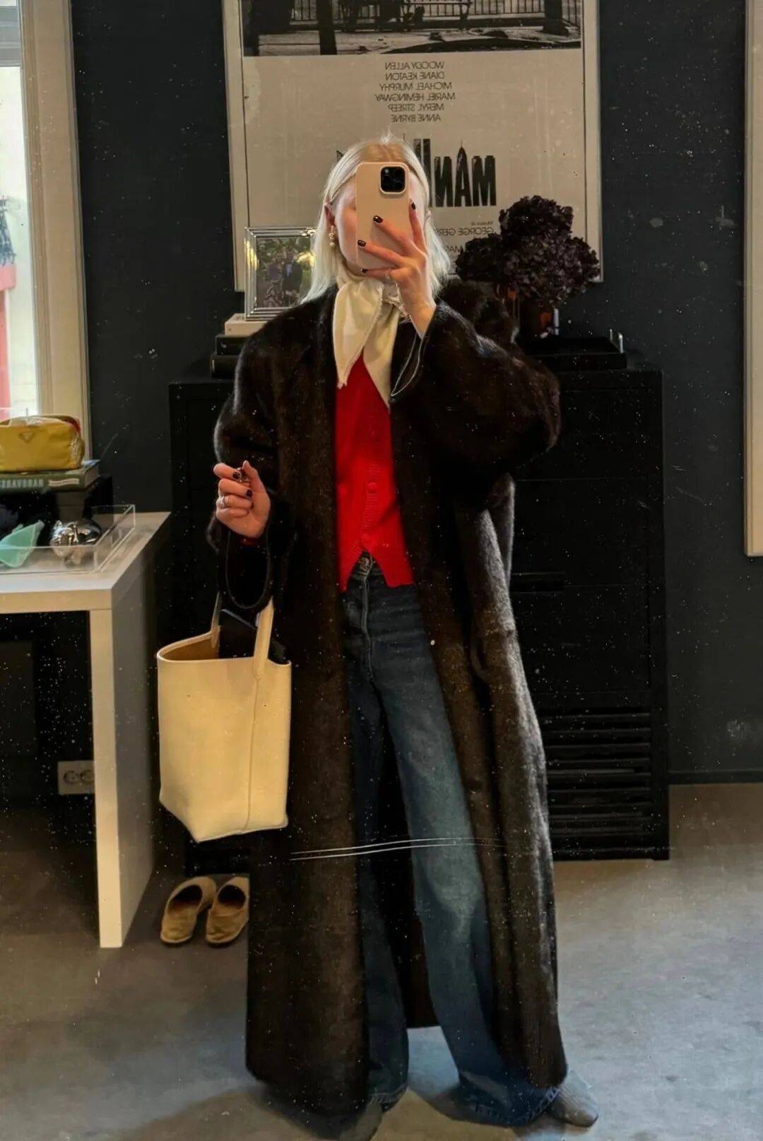 這種穿法就沒那麽保暖了,但特別有造型感。
