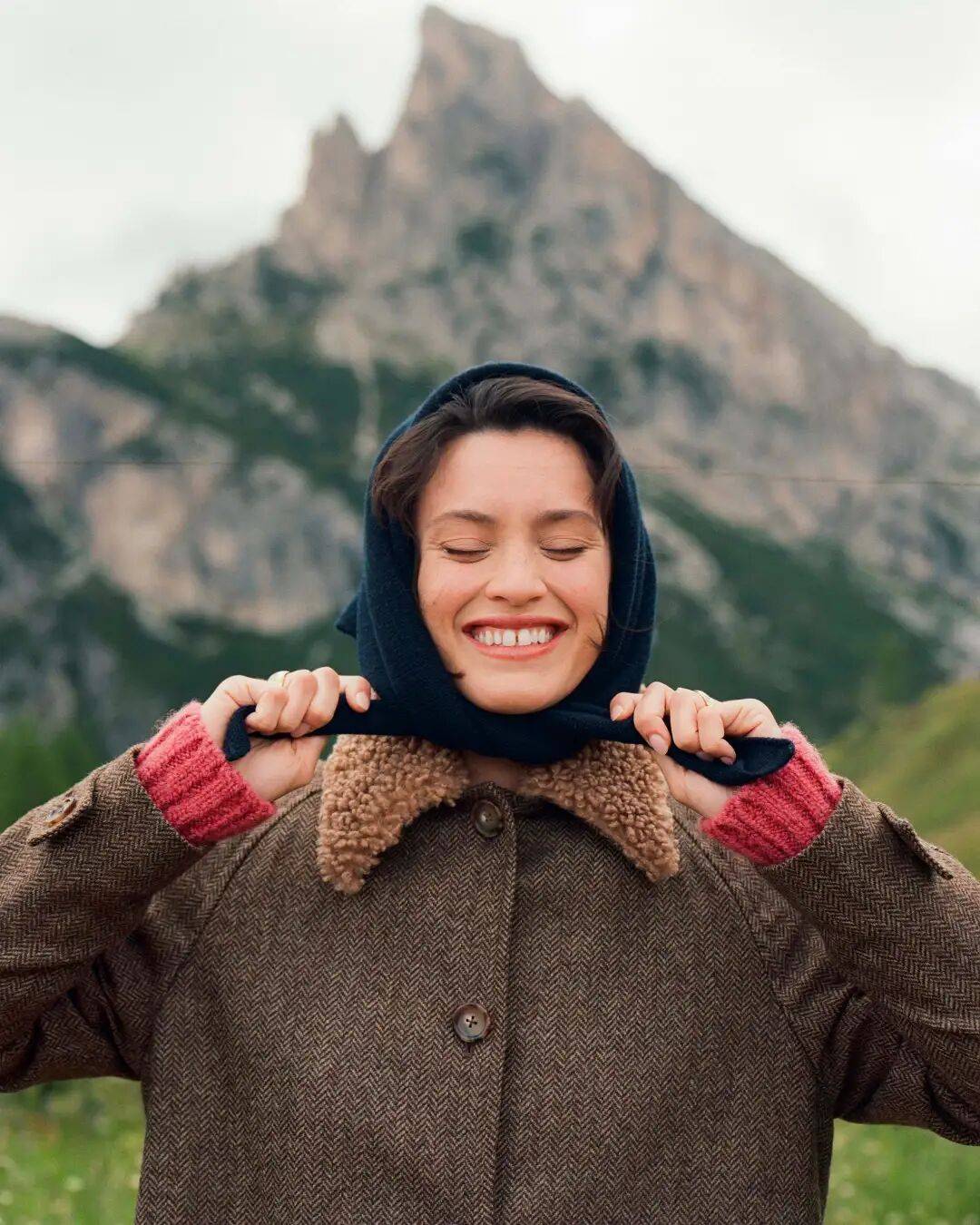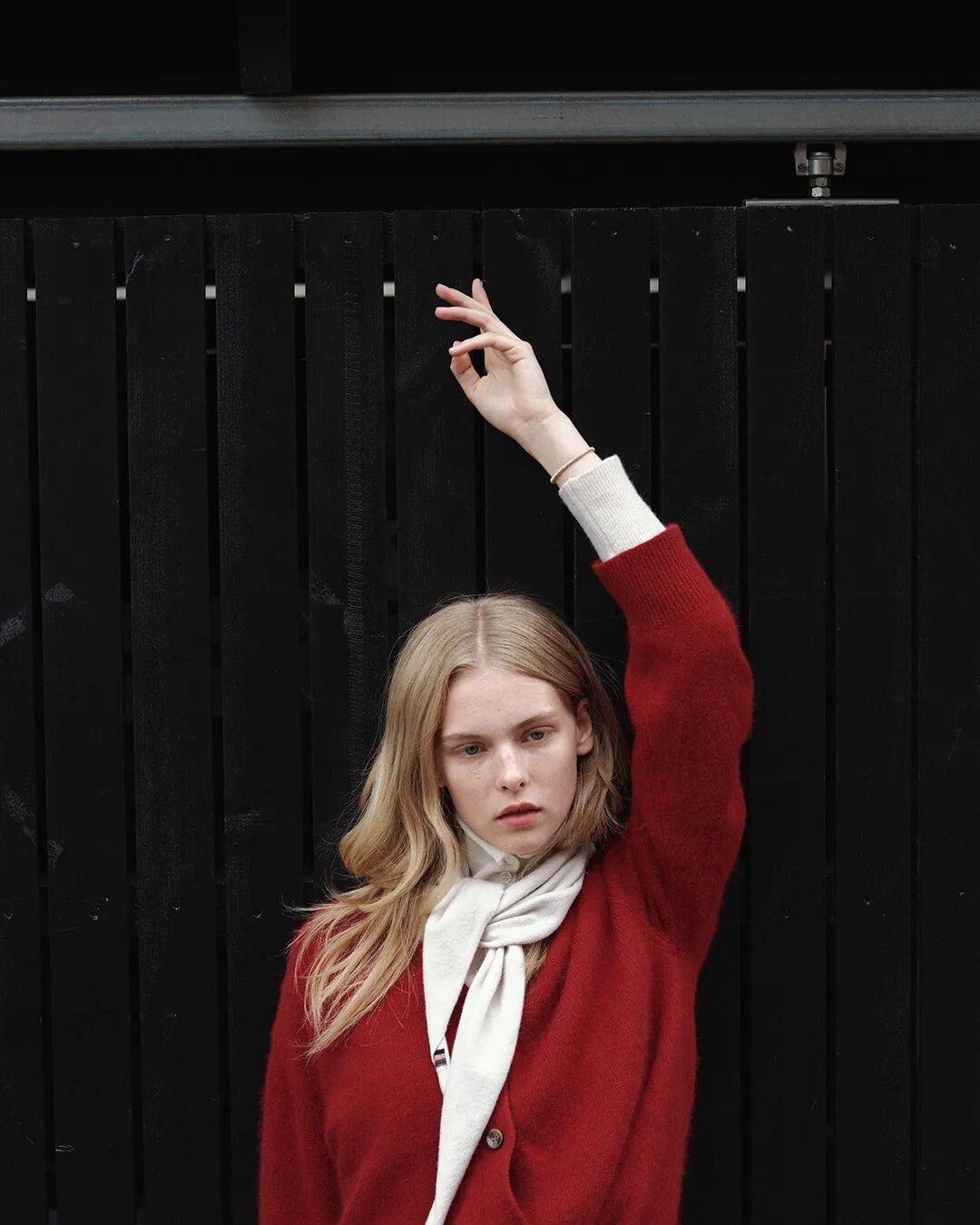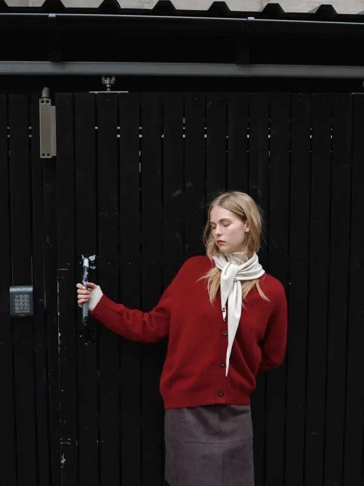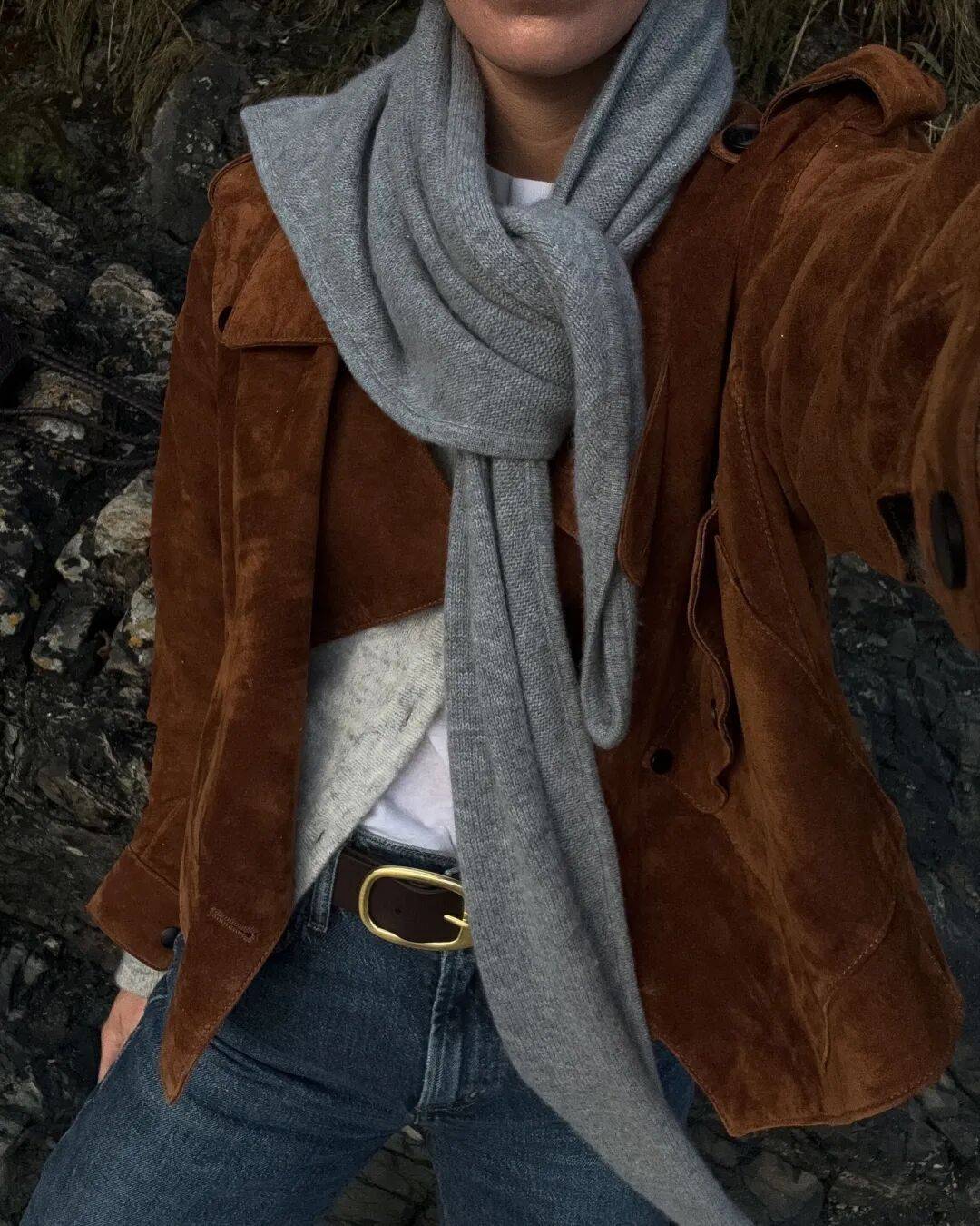 像博主Jessica Skye戴的這條,來自英國品牌Rise&Fall,他家喜歡用羊絨、桑蠶絲、亞麻等材質,這條是70%美利奴羊毛+30%蒙古羊絨,官網參考價890元。▼