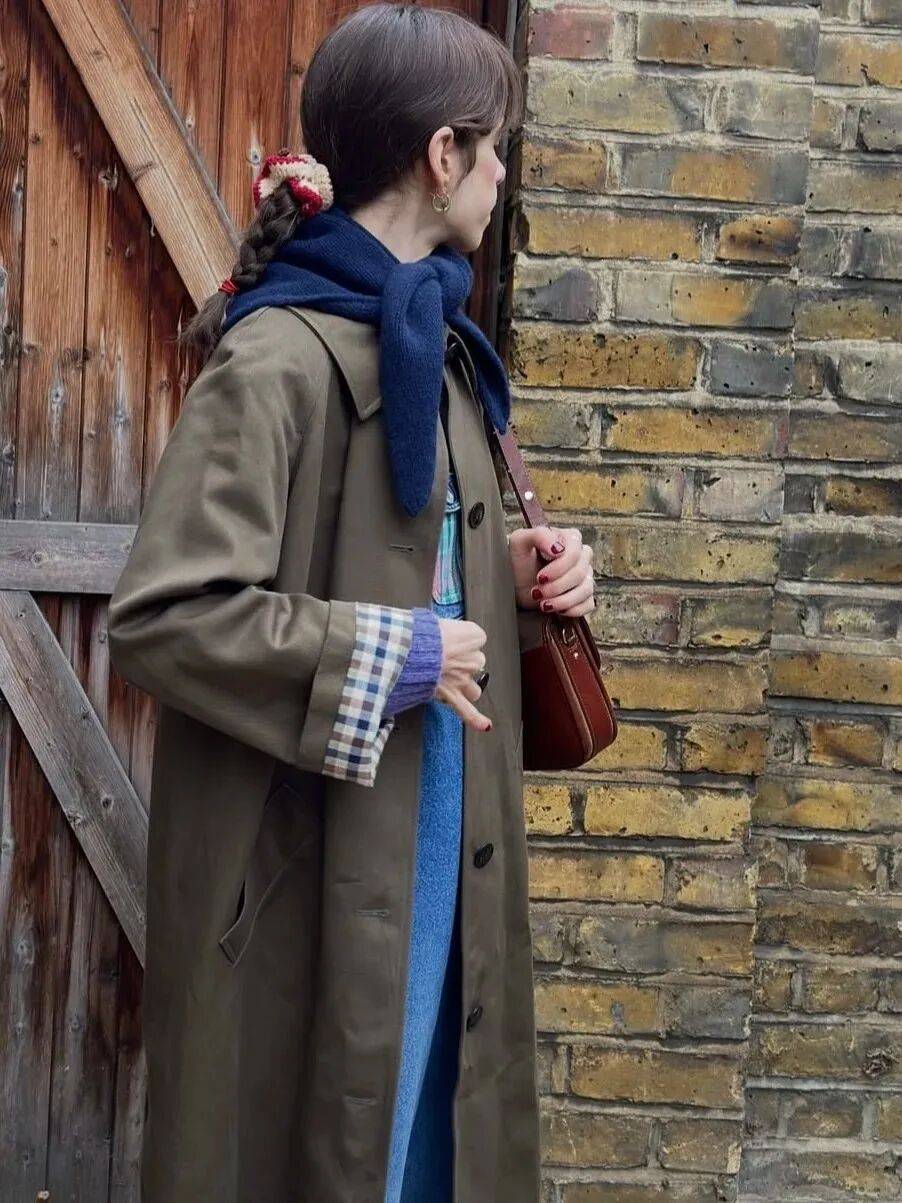 到了秋冬,很多人喜歡穿深色的毛衣、外套,一條明媚的彩色三角巾這時候就有大用途,不僅能一下子點亮沉悶的搭配,還可以點亮心情。