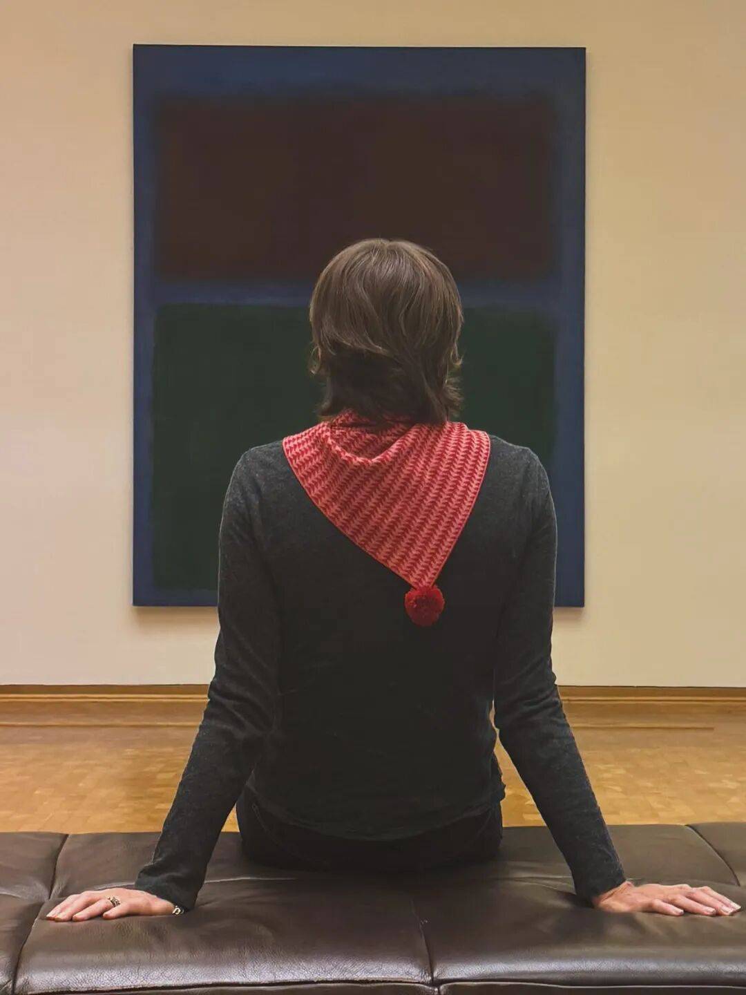 這類配色花樣很多,有不少是相近色拚在一起的。像這種淺紅色+深紅色的搭配,完全可以當紅色三角巾來用。這條來自烏克蘭品牌Eedere Editions,用的是100%美麗奴羊毛,官網參考價約826元。▼