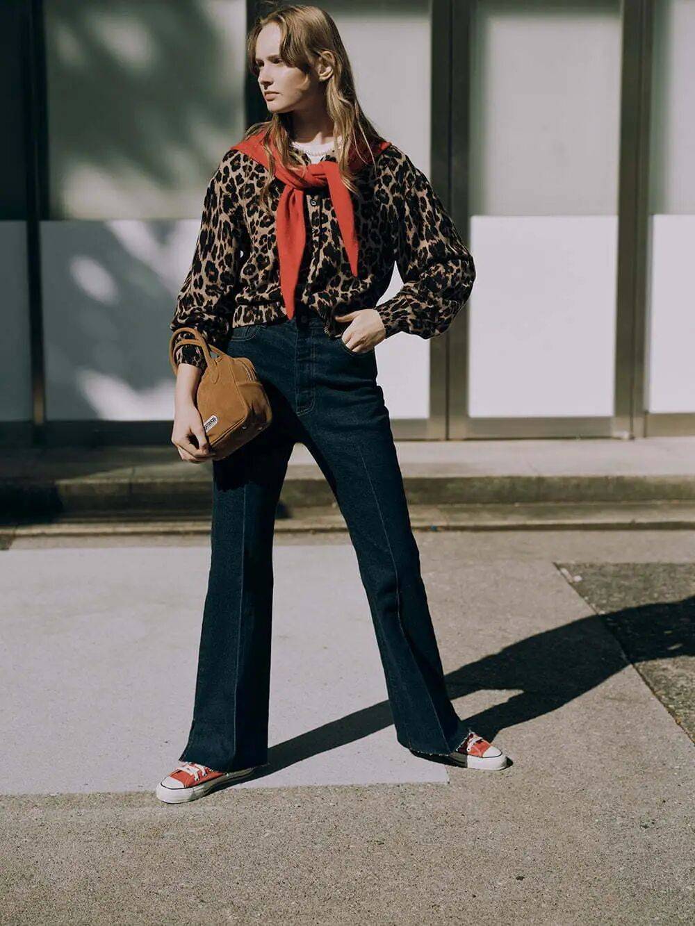 豹紋+紅色三角巾的組合,乍看蠻大膽的哈哈,不過我們以前就寫過,豹紋最配的色彩就是紅色,它的配色思路依舊是棕色+紅色,不會違和。▼