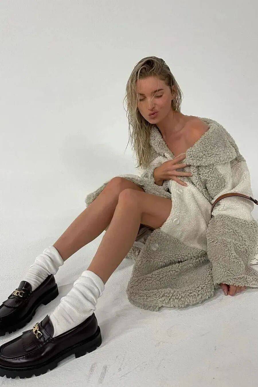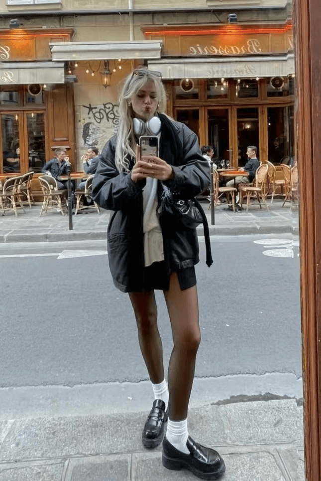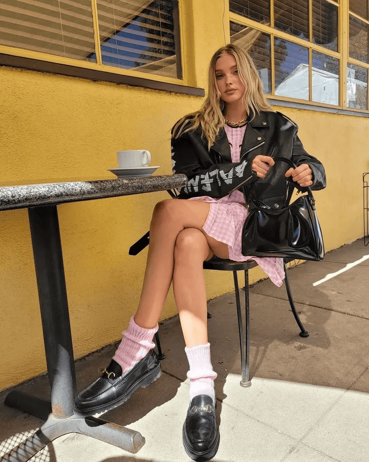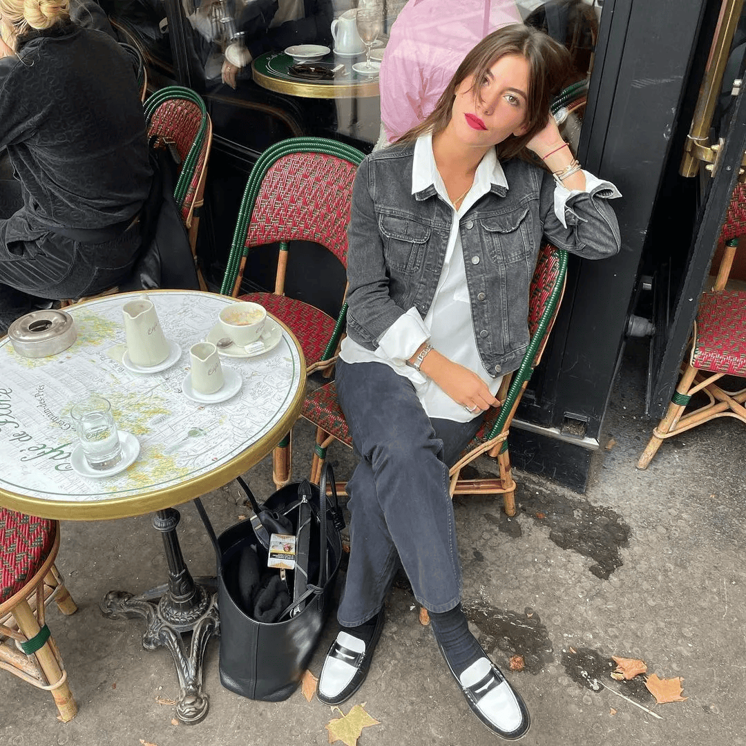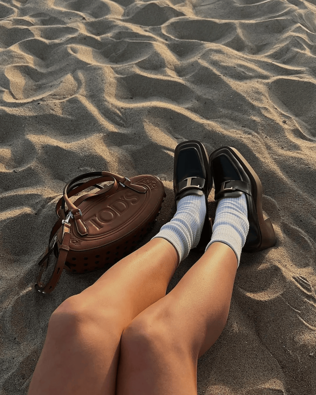 拿捏英倫腔調,白襪+黑色樂福鞋不會錯。這兩年樂福鞋相當火爆,包括GUCCI、CHANEL、MIU MIU、PRADA都有廣受歡迎的標誌性爆款。人人都穿的潮流之下,撞款不撞搭配的秘訣竟是加一雙白襪!