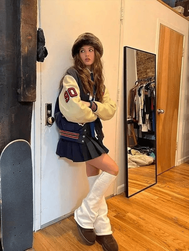 南方女孩可以繼續沿用“下身失蹤”的穿法,製造穿搭層次。北方女孩還是溫暖至上,利用連褲襪+短襪的組合來保暖。