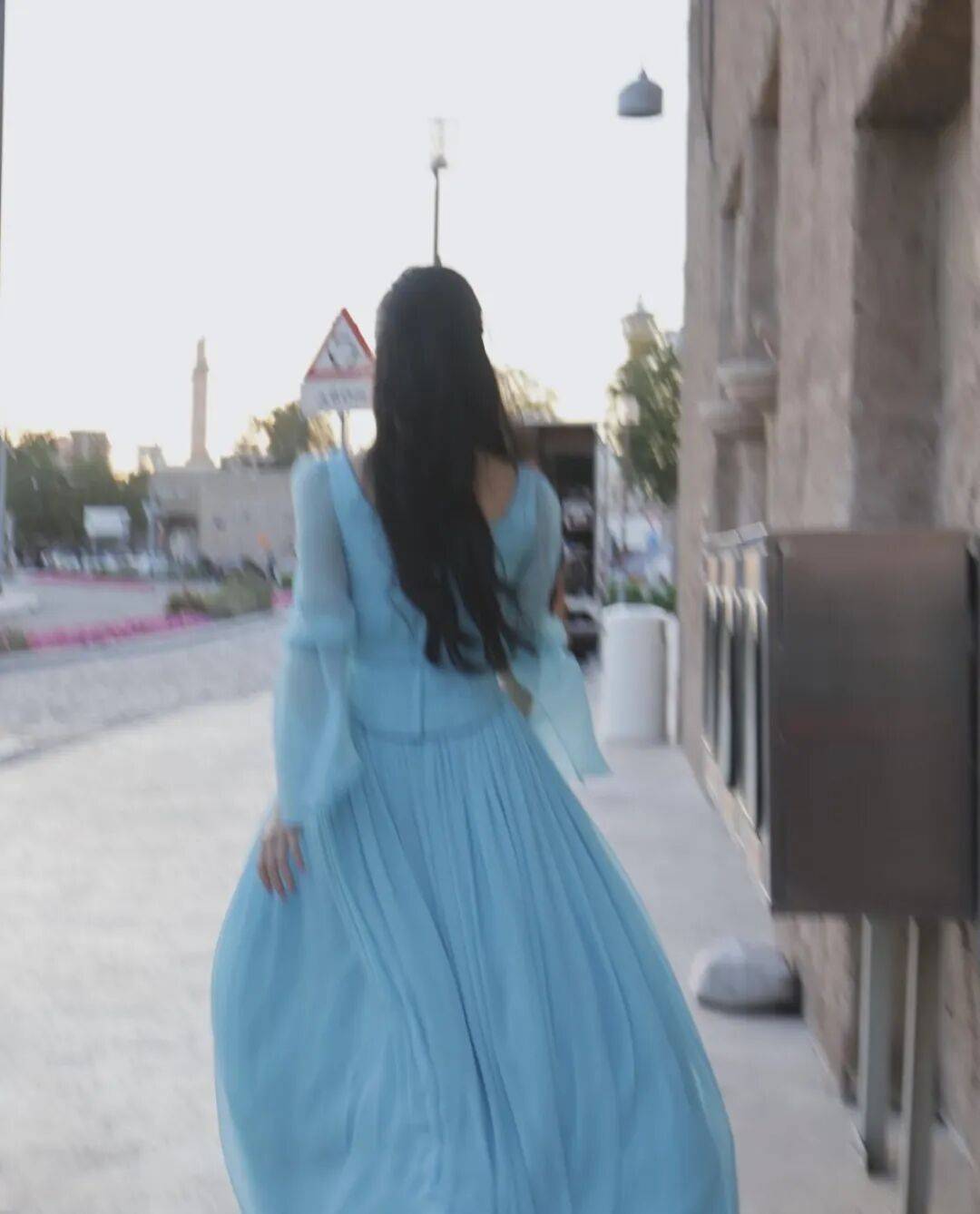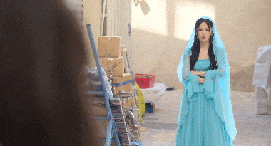 咱們喬妹還友情客串了一下,這個造型絕美,半紮發+湖藍色仙女裙+煙熏妝,真的太精靈了吧!