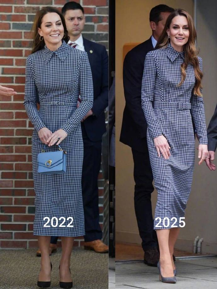 據11月30日報道,近日,凱特王妃一身千鳥格連衣裙現身倫敦兒童心理健康機構,瞬間引爆全球關注。不過,這次焦點不隻在她親民務實的作風上,更在於她身上那條“老熟人”裙子——與2022年12月訪問哈佛大學時穿的是同一條,隻是這次換上了寬腰帶。新舊照片一對比,網友驚呼:“她瘦了好多!”
