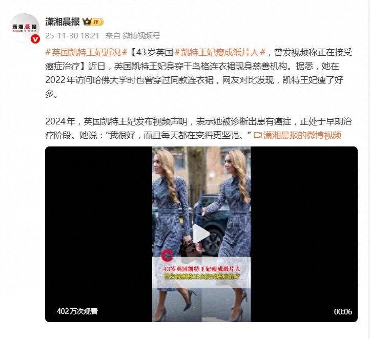 這可不是普通的“身材管理”,單薄如紙的身形背後,是一場與癌症的艱難博弈。身高175cm的凱特,體重已驟降至約45公斤,昔日的神采被病痛和治療刻上了痕跡。