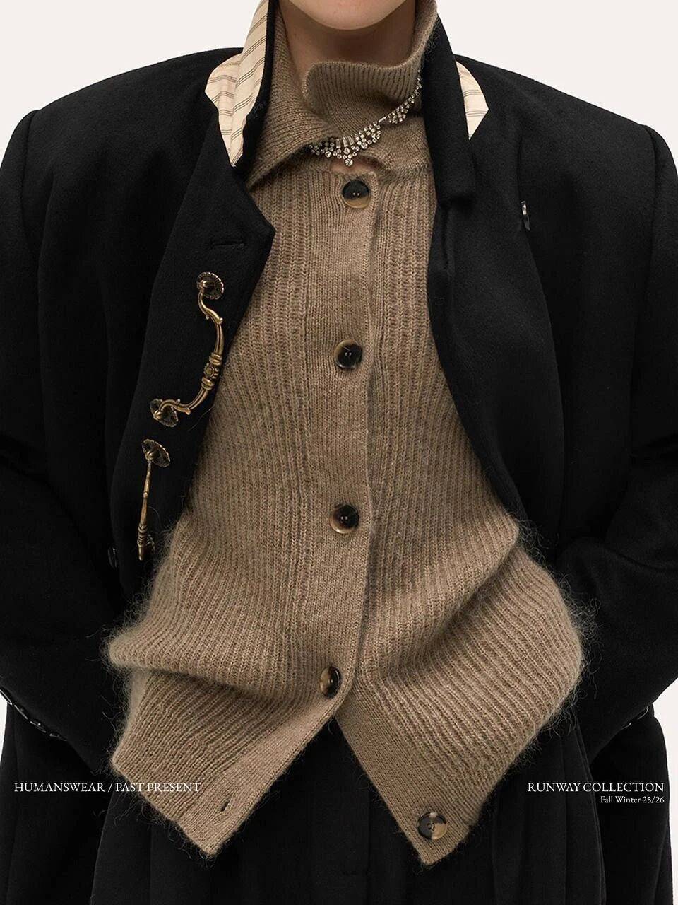 內搭的駝色毛衣,
