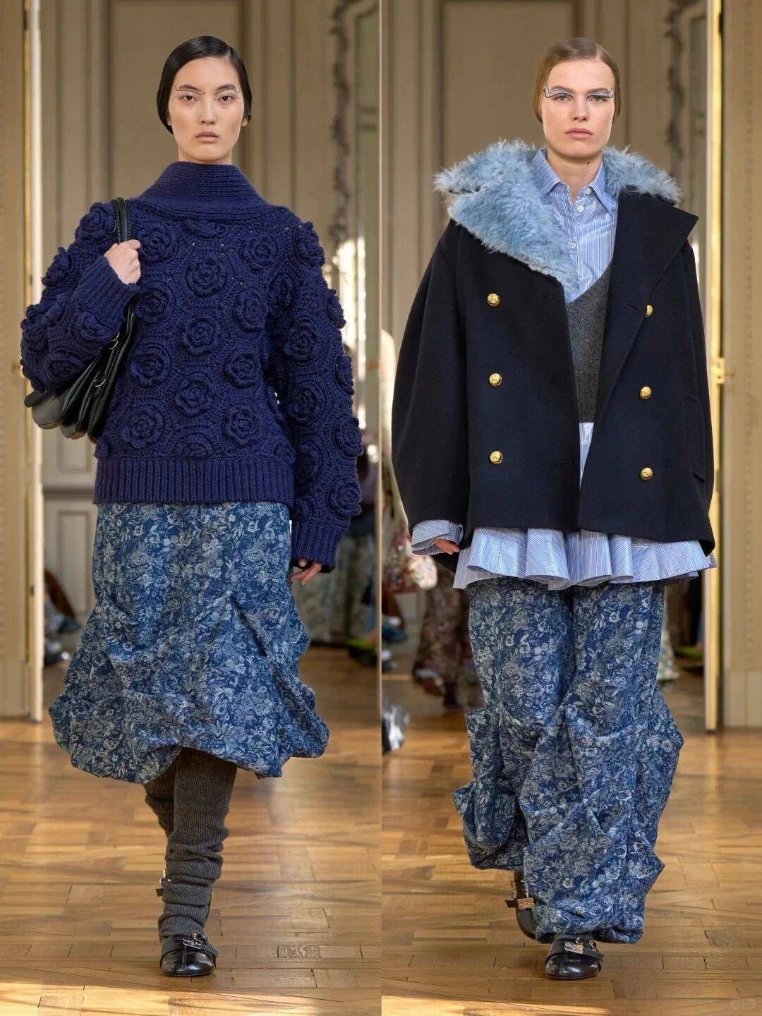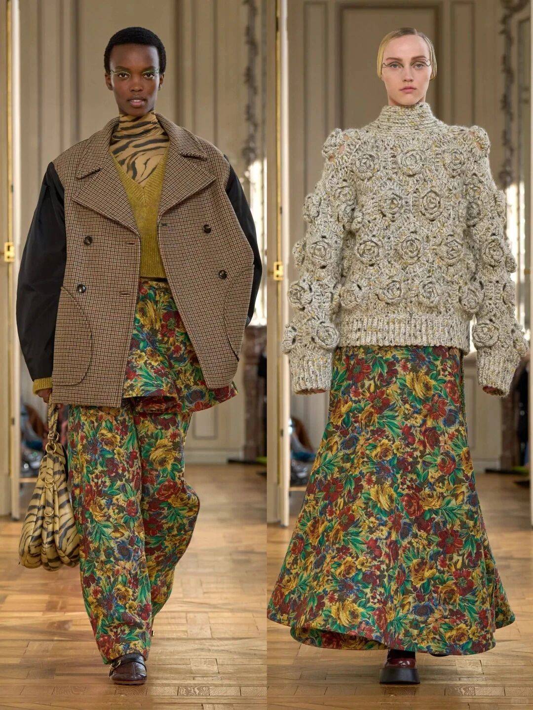 冬季不是不能穿碎花,當小量感碎花搭配褶皺重工蛋糕裙的立體廓形,就能撐得起秋冬外套的厚重 ,打造秋冬浪漫鬆弛感。外套和內搭的顏色與碎花的某一色調呼應,提升了整體造型的和諧度。