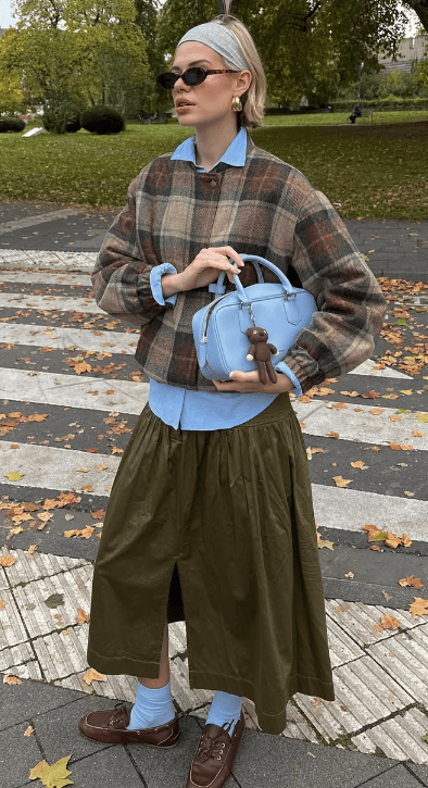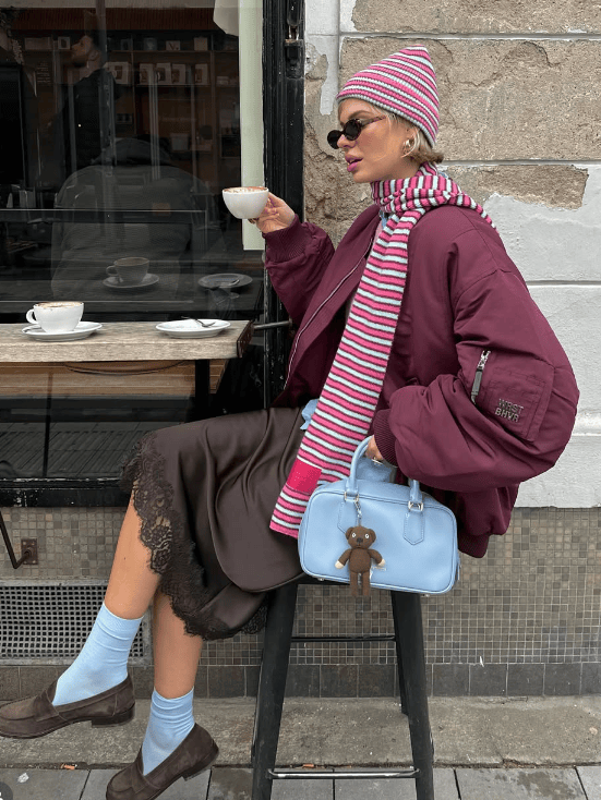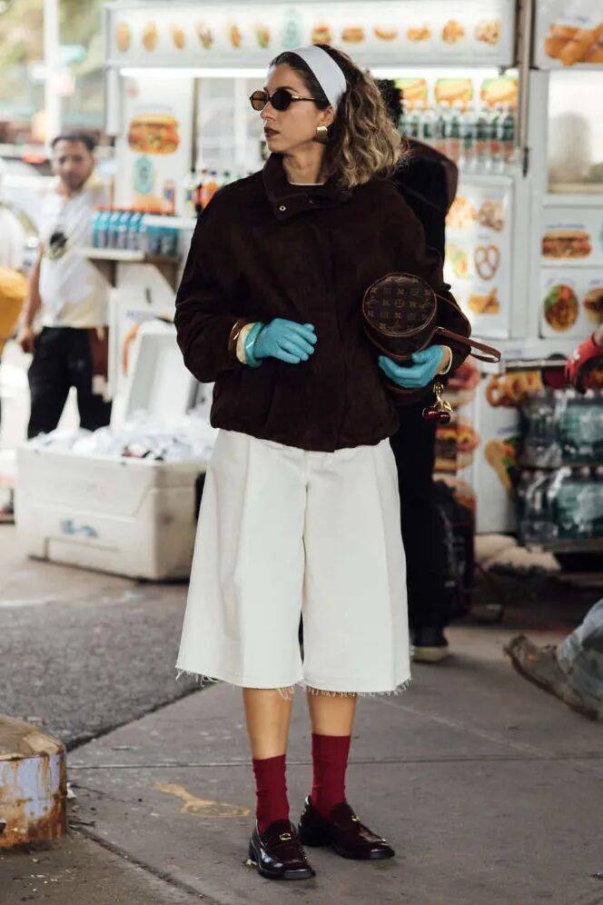 Linda非常喜歡用彩色的襪子呼應穿搭,