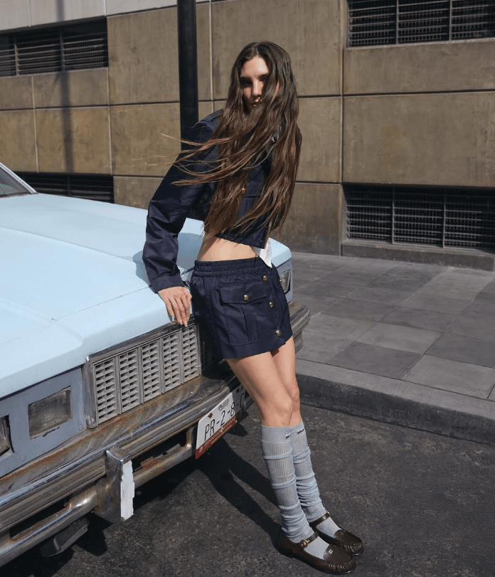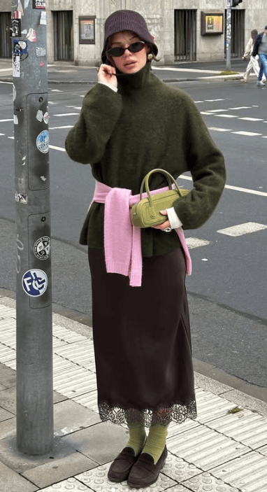 ins博主Linda就十分酷愛彩色的露襪穿法,