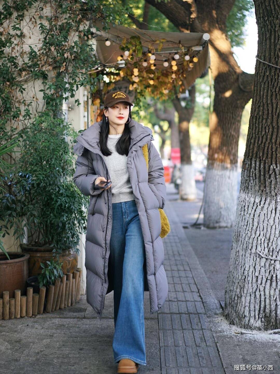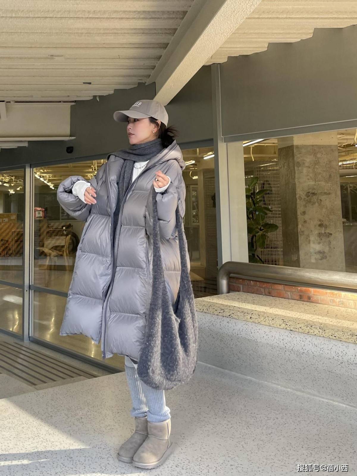 同色係的搭配是最不出錯的搭配法,比如外麵穿灰色羽絨服,裏麵搭配白色打底衫,下半身配白色闊腿褲和內搭呼應,整體色調統一又有層次,麵料上羽絨服的順滑和針織衫的軟糯還可以形成對比,提個包包出門,韓係鬆弛感直接拉滿,通勤穿低調又顯貴。